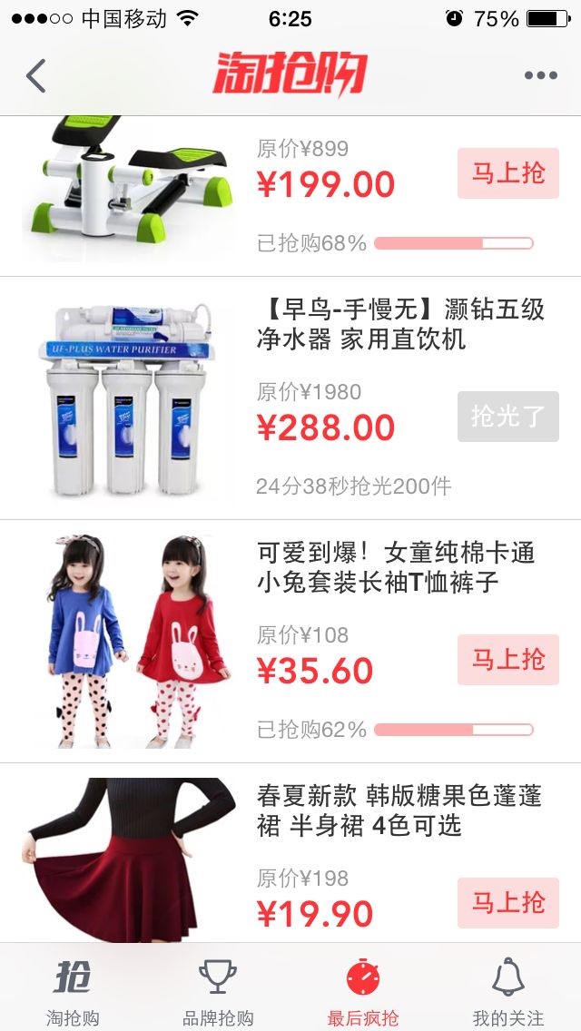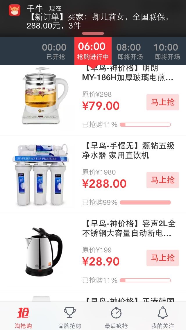 根據(jù)“淘搶購”活動(dòng)安排,我們的產(chǎn)品被安排在凌晨6:00-8:00的時(shí)間段,拿到時(shí)間表那一刻辦公室內(nèi)充滿了凝重的氣氛,因?yàn)閷?duì)于節(jié)假日來說,這個(gè)時(shí)間段大多數(shù)人都仍在睡夢(mèng)中,極少數(shù)會(huì)為了搶購而早起。固當(dāng)日公司只安排了200臺(tái)機(jī)器來回饋新老用戶。